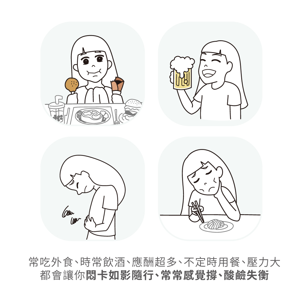 我們常常一不注意就成為不良飲食型態,事業、家庭帶來的緊迫與壓力都讓我們養成了快點吃、隨便吃的習慣,隨之而來的飯後困擾就如影隨形。