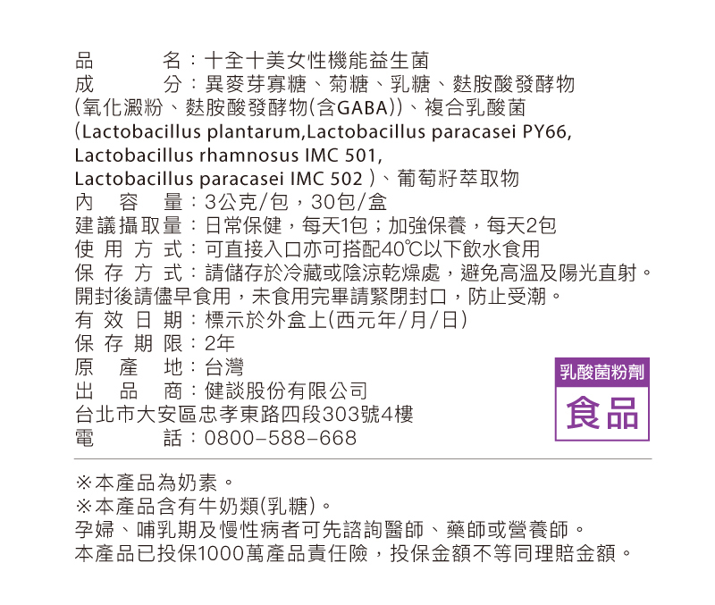 ☆ 每包3公克,出廠菌數高達400億,拒絕使用任何無用菌衝高菌數!